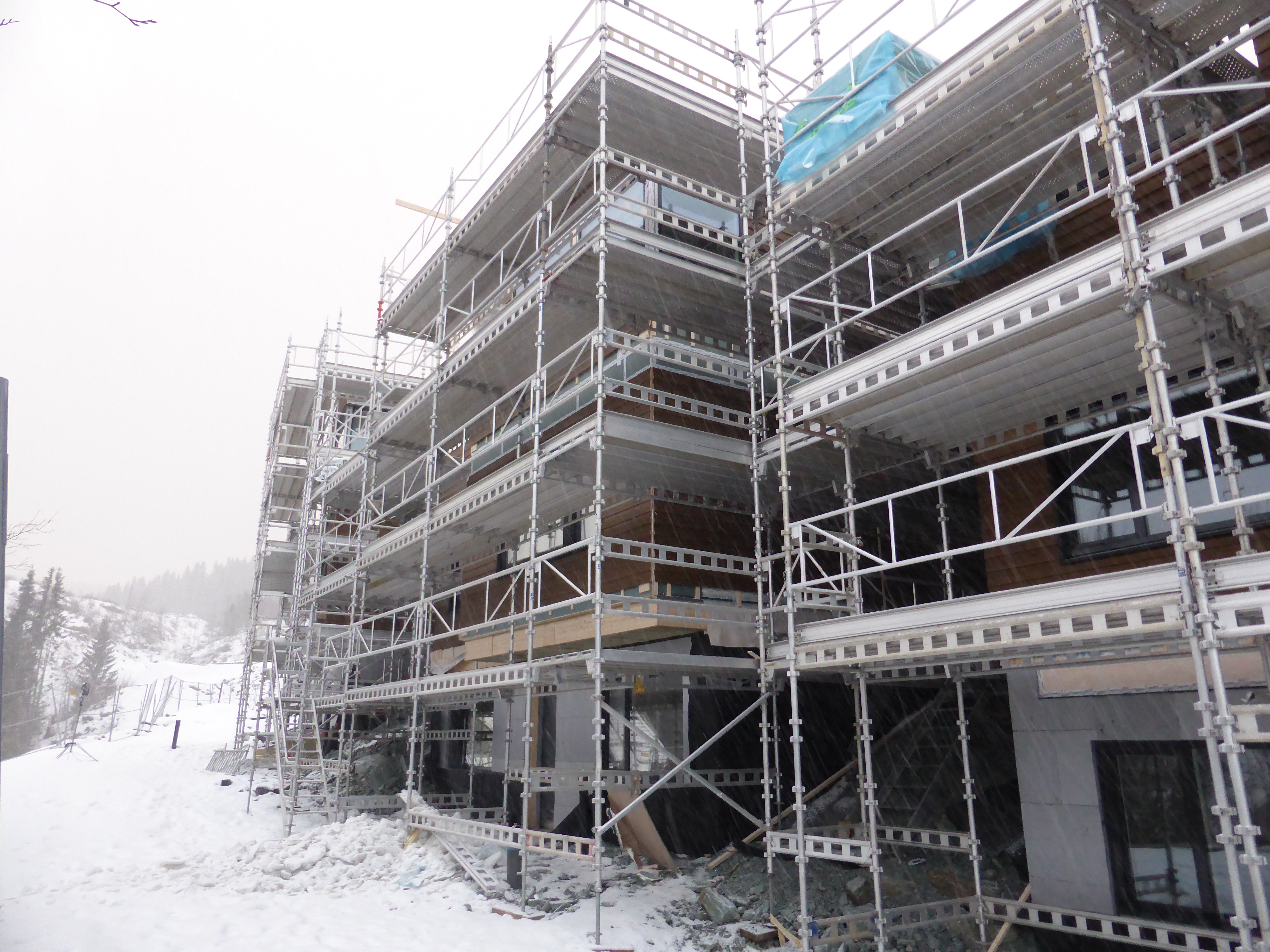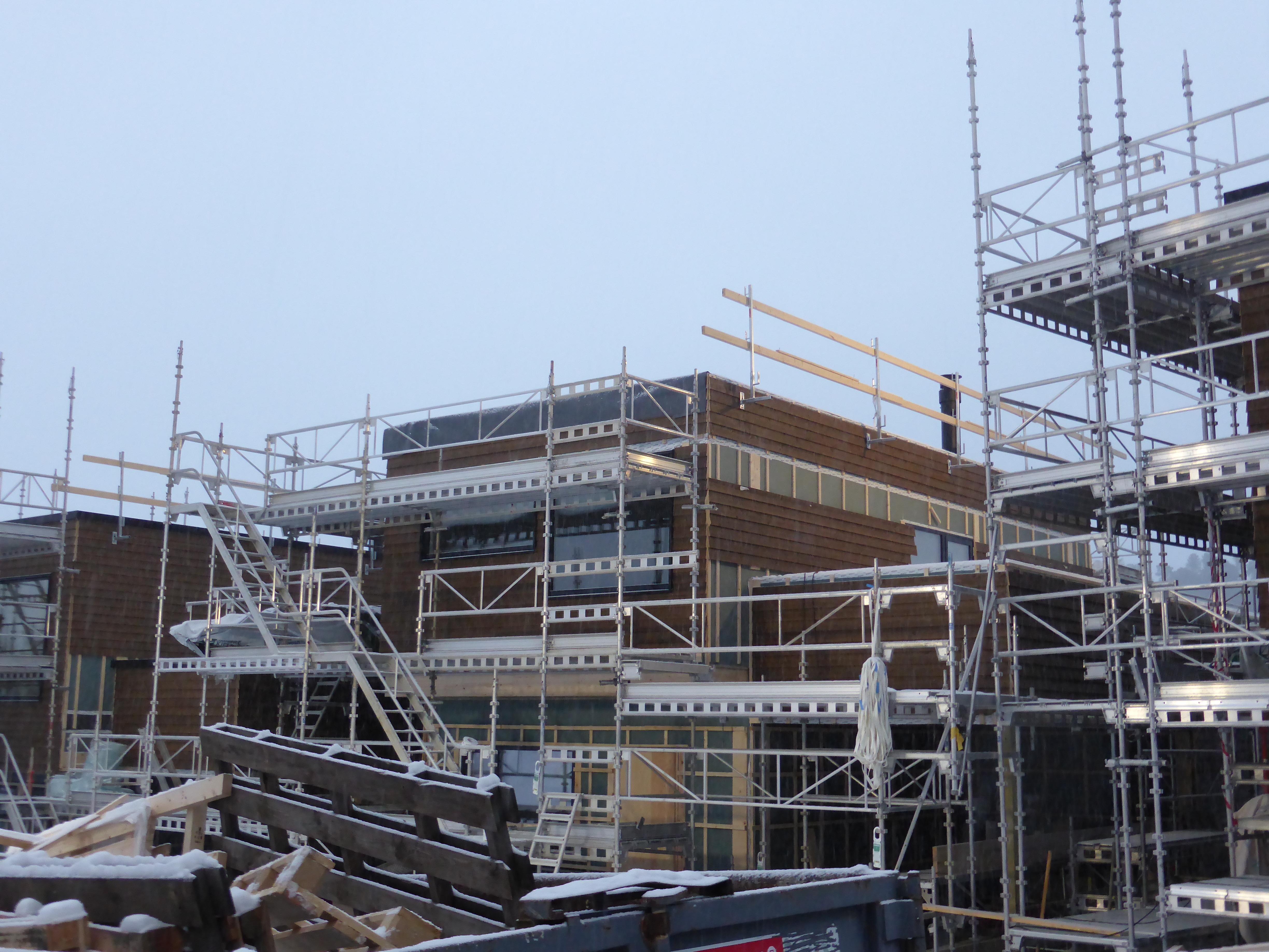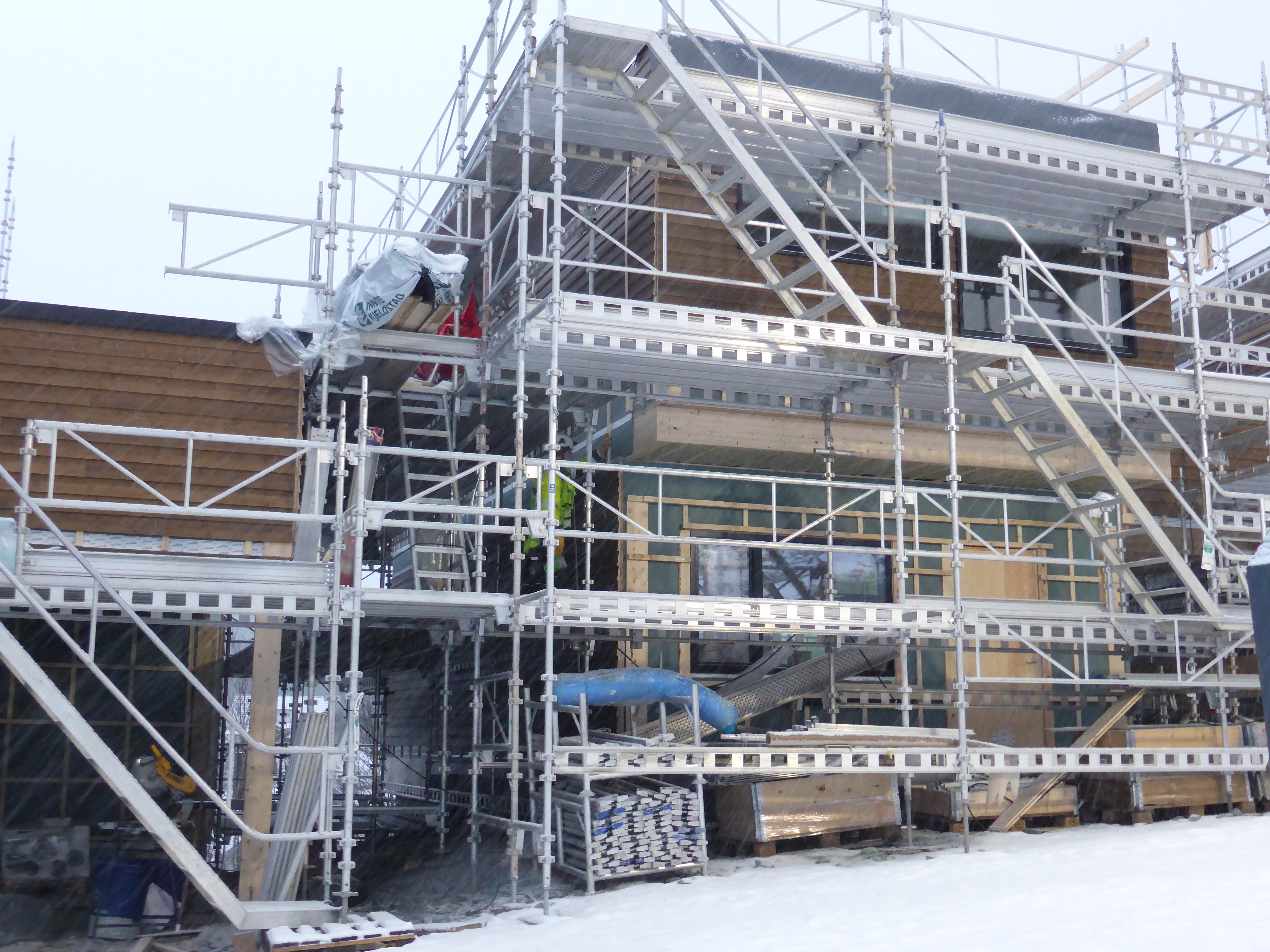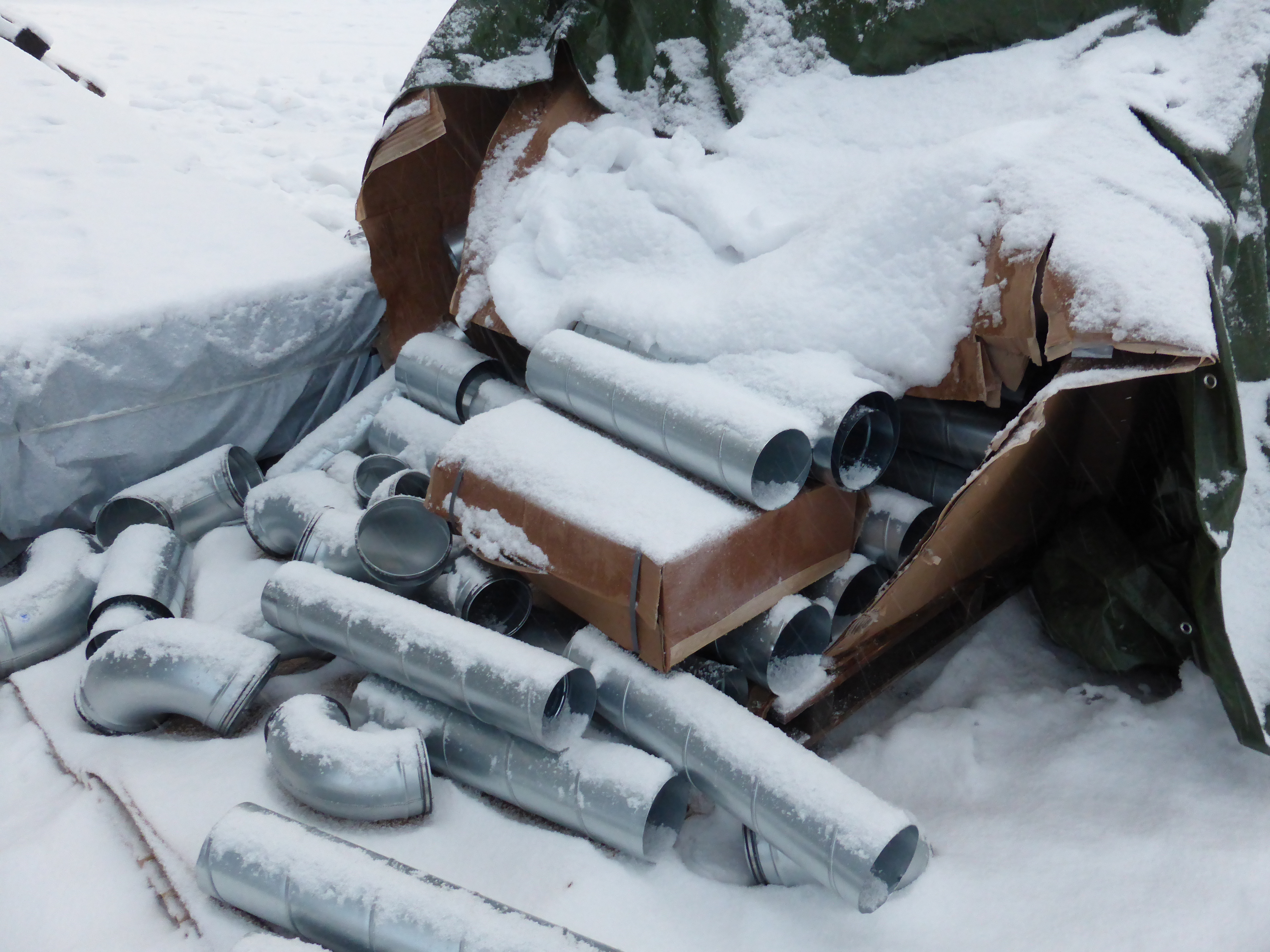 Dukka opp pipe. Fyllt i isolasjon i begge utstikkene. En holdt på å feste lekter der de hadde tetta etasjeskille på nordvegg