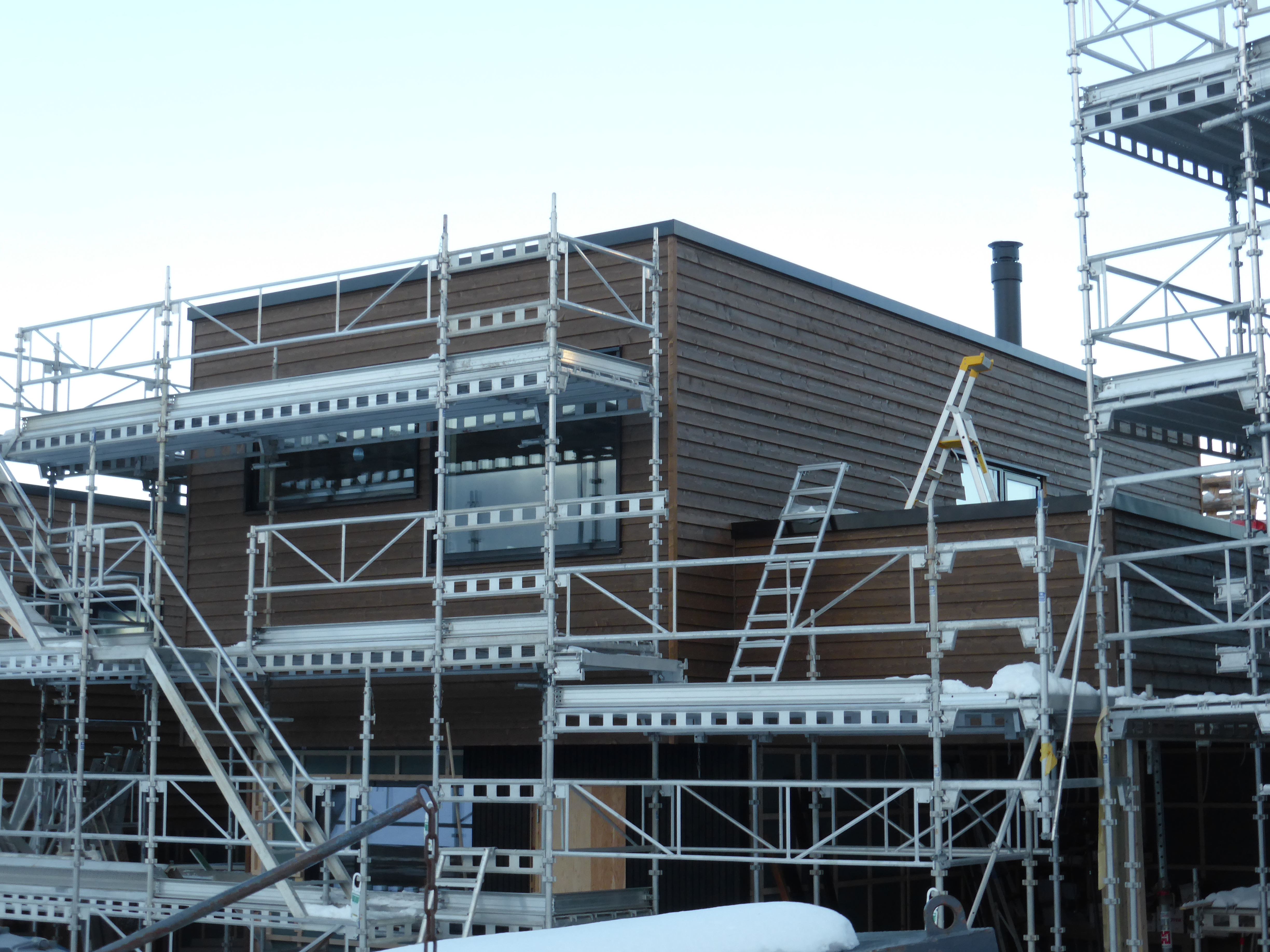 Montering sentralstøvsuger (Marek ringte for å høre hvor uttaket skulle være) Det fæle svarte panelet på vei opp på fronten. Noen flere hjørnekasser på plass