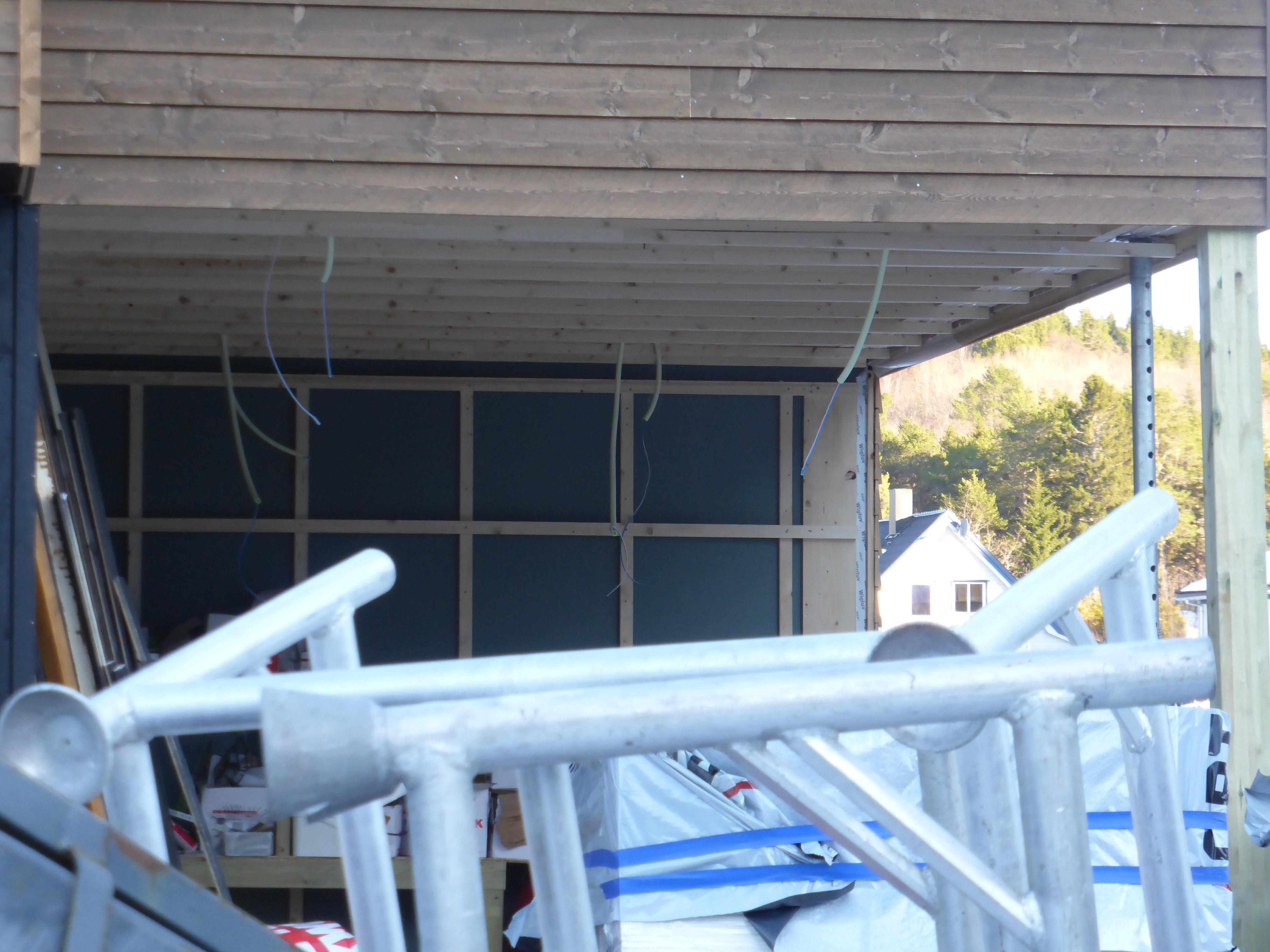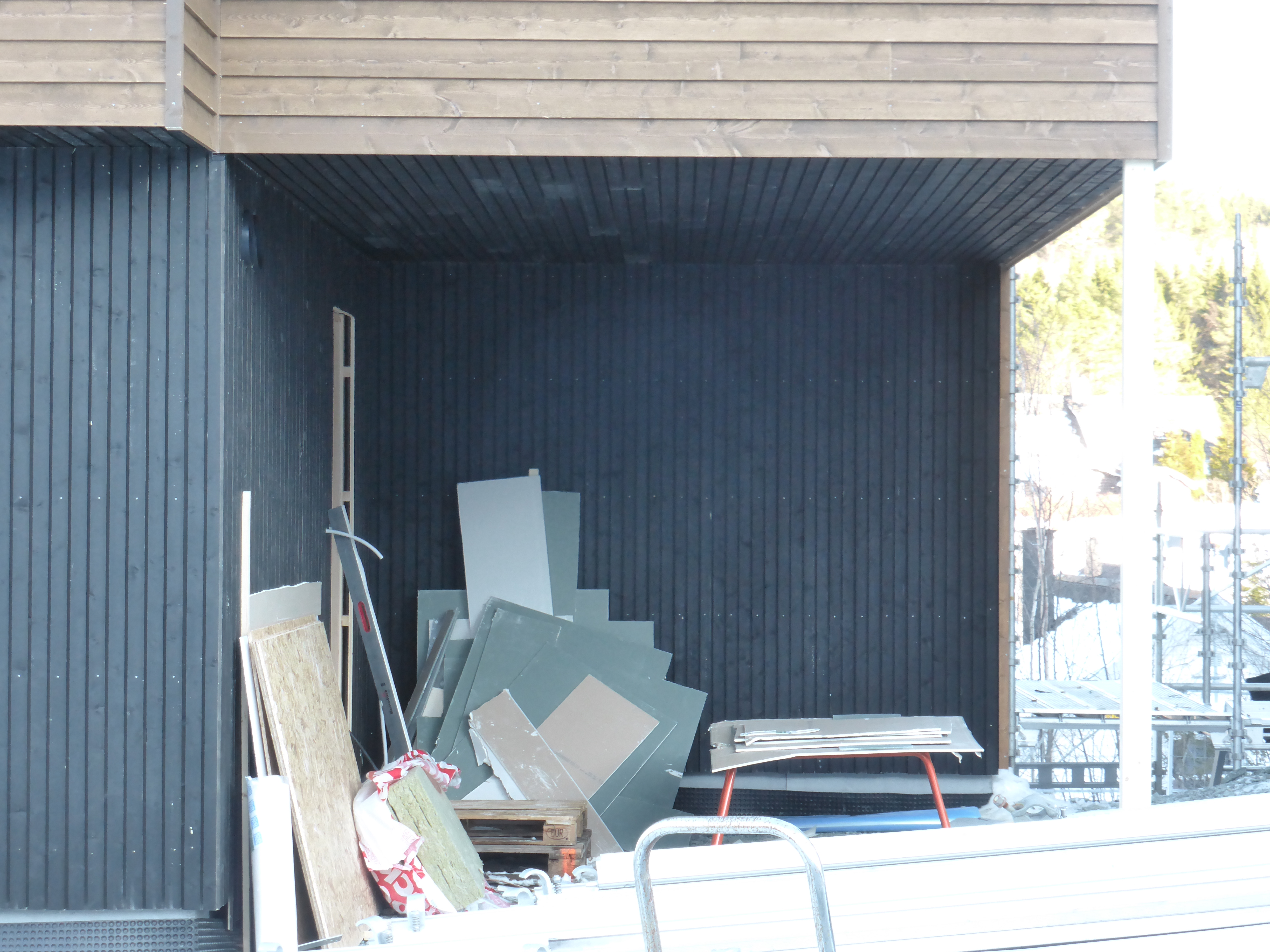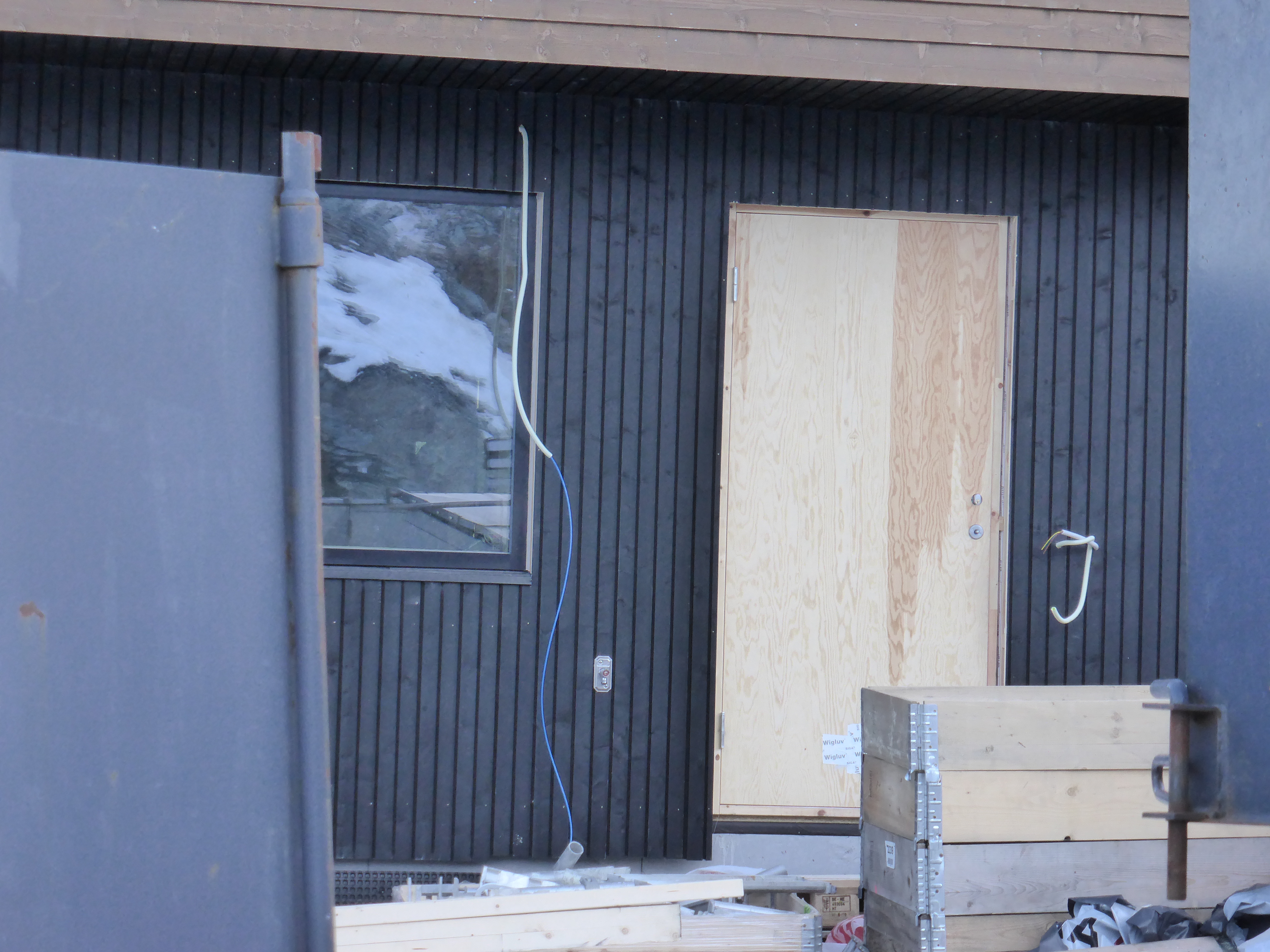 2 stk holdt på inne (i ferd med å pakke sammen for dagen) - så ut som gipsing i 1.etg. Døra var åpen så jeg så gips i entre, men klarte ikke se lenger inn