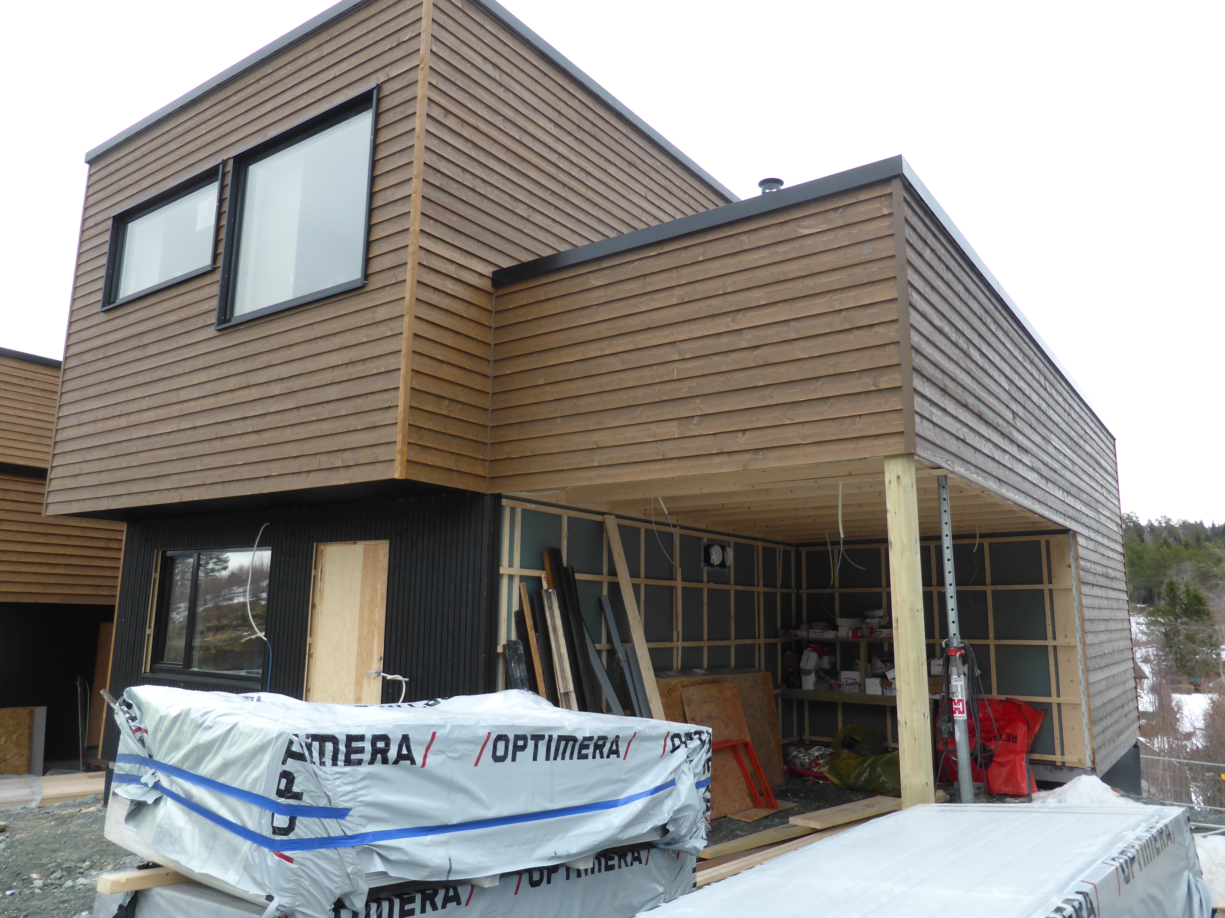 Kom innom akkurat i det ett lite byggemøte utenfor så jeg fikk en 2min kikk inni. Så ut til at det meste av 1. og 2.etg var ferdig gipsa. Stolpen i trappa var fjerna, men enda ingen detaljer om hvordan den endra varianten blir