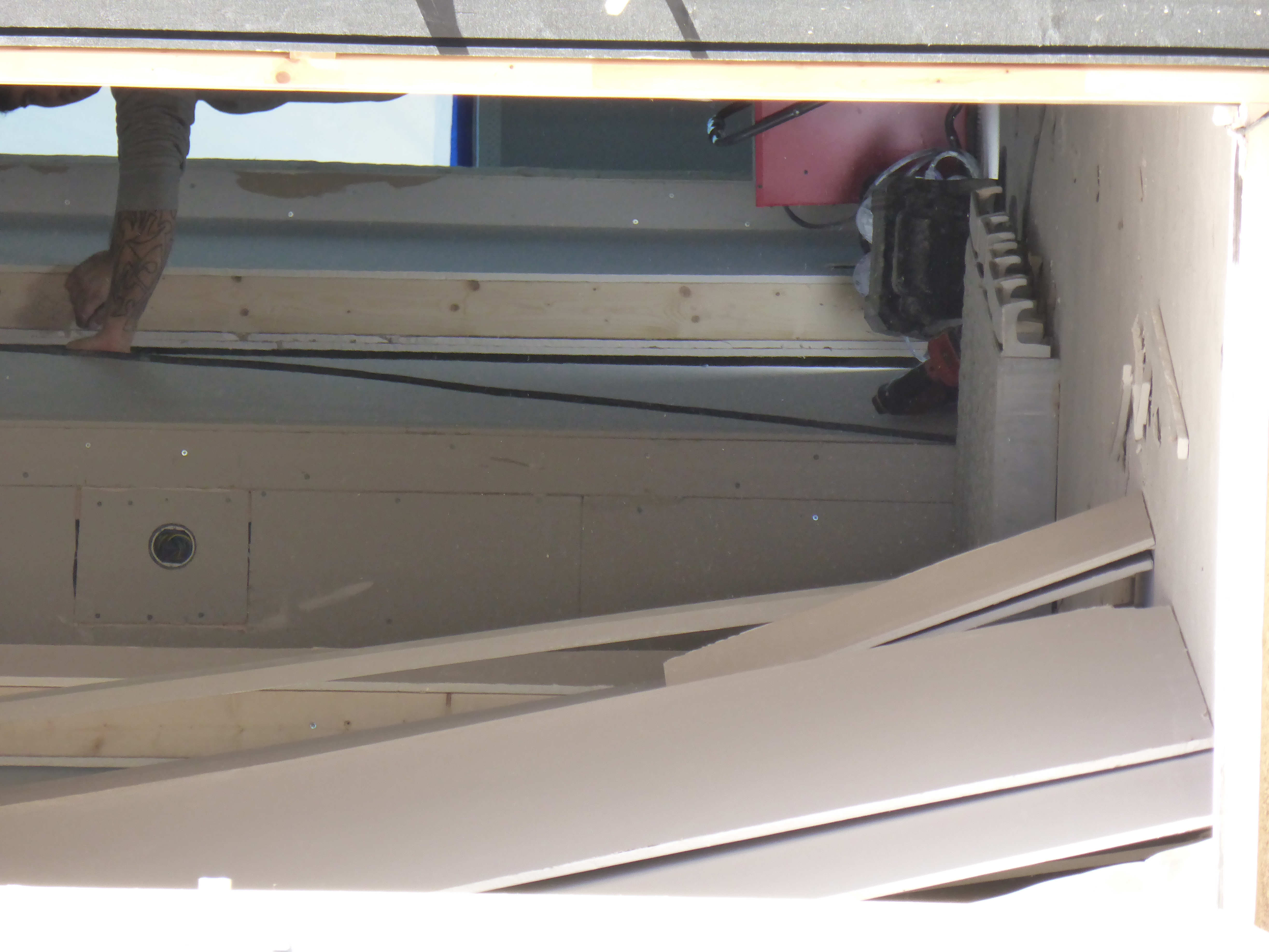 2 stk holdt på med noe i 1.etg - så ut som innpå badet. En kom ut med noen gipsbiter Ingenting synlig sparkla. Trappeveggen hos #50 er sparkla, men umalt så maleren er kanskje opptatt der